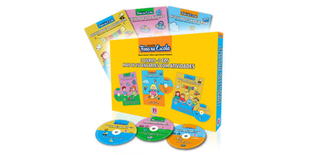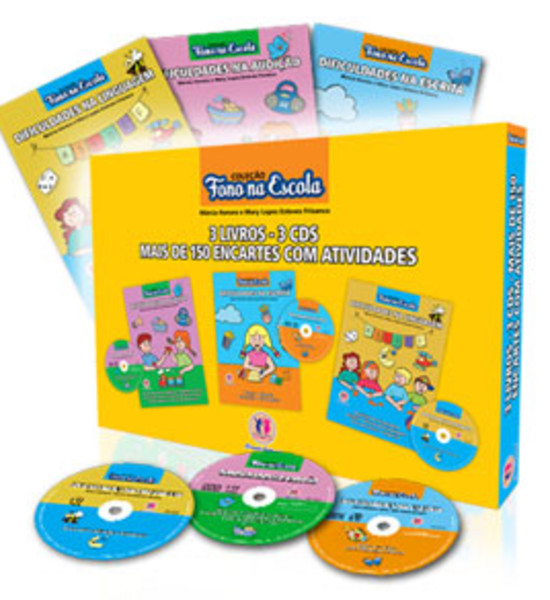 Descrição: O intuito desta coleção é levar informações sobre os principais distúrbios fonoaudiólogos que os alunos apresentam até completarem o Ensino Fundamental I, ou seja, dez anos. Esta coleção consta de três volumes, discutindo as mais frequentes patologias fonoaudiológicas que envolvem os alunos na faixa etária o Ens. Fundamental, e cada um traz os conhecimentos específicos da área da Fonoaudiologia e da Pedagogia. 3 Livros 3 Cds Mais de 150 encartes com atividades Títulos: Dificuldades na Audição, Dificuldades na Escrita e Dificuldades na Linguagem. Autoras: Márcia Honora e Mary Lopes Esteves Frizanco